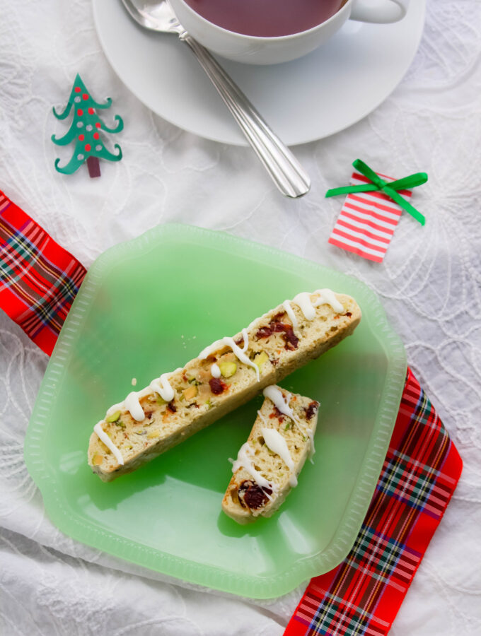 Cherry-Pistachio Biscotti will make a festive addition to your cookie tray this season. Dunk them in coffee, hot tea or hot cocoa, or just nibble on them as-is. They make a fab treat.