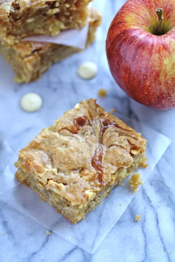 These Caramel Apple and White Chocolate Chip Blondies are a true treat for the season. I hope you’ll give them a try and enjoy!