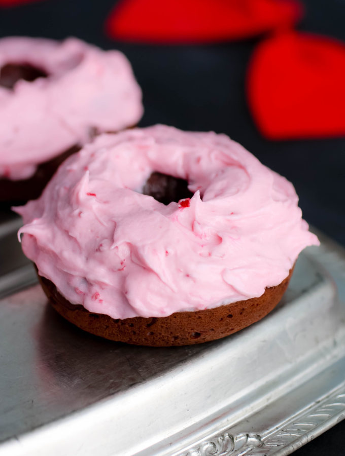 Chocolate beet donuts with peppermint cream cheese frosting are something special! They’re moist and rich, and topped with a pink-hued creamy frosting for an extra-special touch.