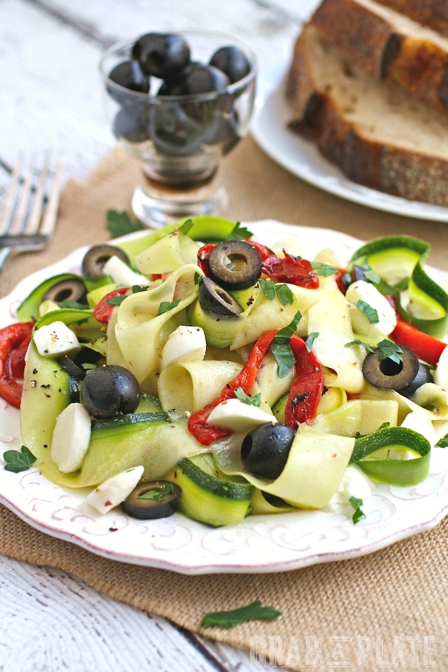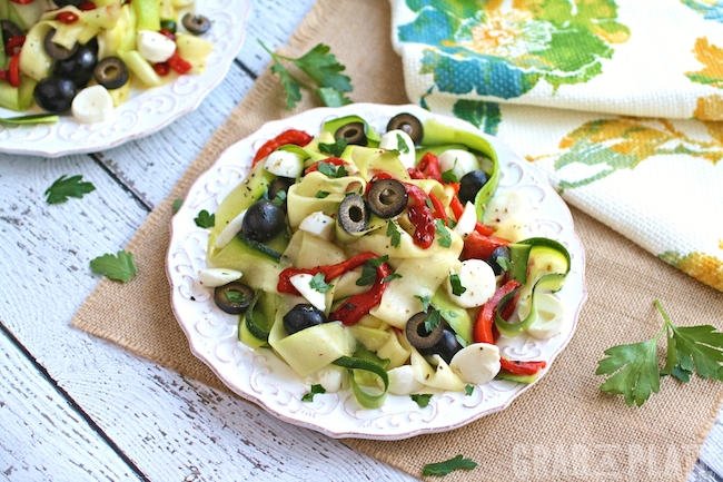 There are many recipes out there that use zucchini in place of pasta. I hope you’ll love this recipe for Chilled Zucchini Ribbon “Pasta” with Black Olives, Roasted Red Peppers and Mozzarella as much as I do. Have you ever used zucchini in place of pasta?