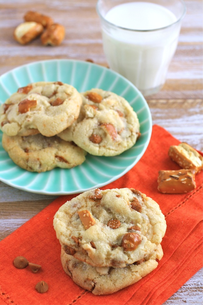 Cookies are my downfall. I could eat a bunch in one sitting. I don’t, but I could. These Cinnamon Pretzel Crunch Sugar Cookies are seriously tempting and seriously delicious. They’re chewy and crunchy, sweet, and cinnamon-spiced.