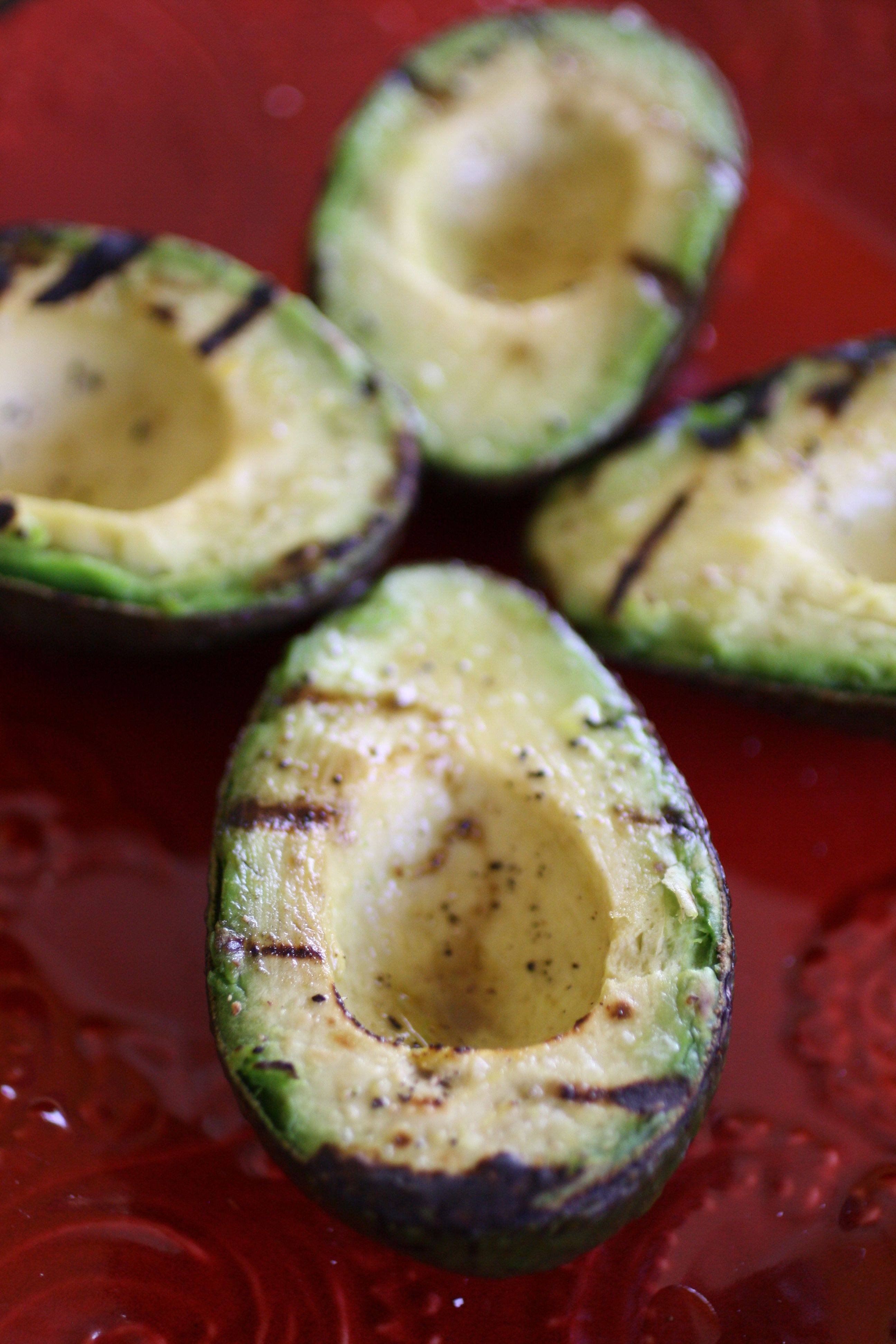 - Place the avocados, cut side up, directly on the grill and cook for 4 minutes, then flip and cook, cut side down, for another 2 minutes. When finished, remove and set aside.