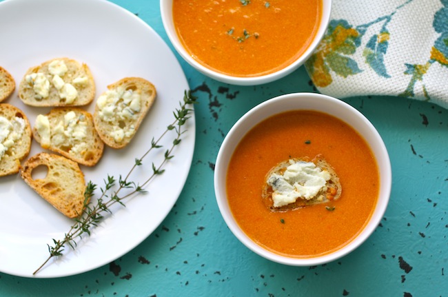 Recipe for Roasted Tomato Bisque with Blue Cheese Croutons